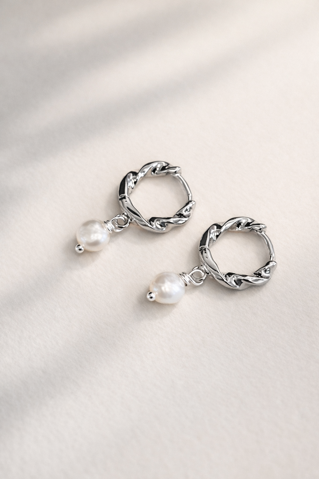 Elevate your collection with the exquisite Chanel silver-plated twist huggies, adorned with a delicate freshwater pearl. These earrings encapsulate the harmony of modern artistry and classic elegance.