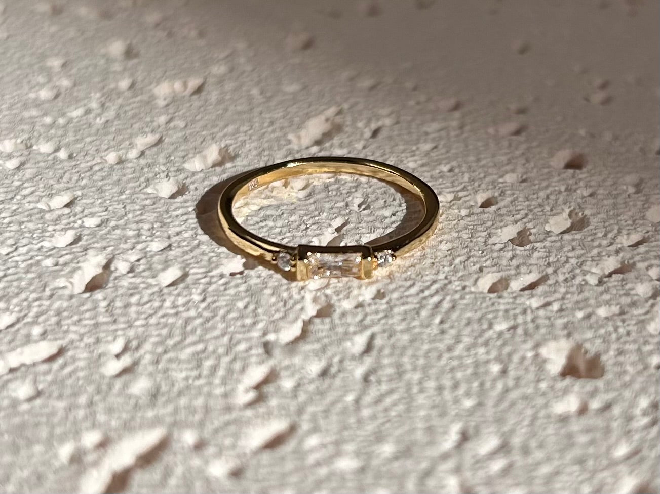 Grace is the perfect addition to any jewelry collection. Made with sterling silver and gold plating, this elegant ring features shimmering cubic zirconia stones that add just the right amount of sparkle. Its stackable design allows for endless styling possibilities, making it a versatile and timeless piece.
