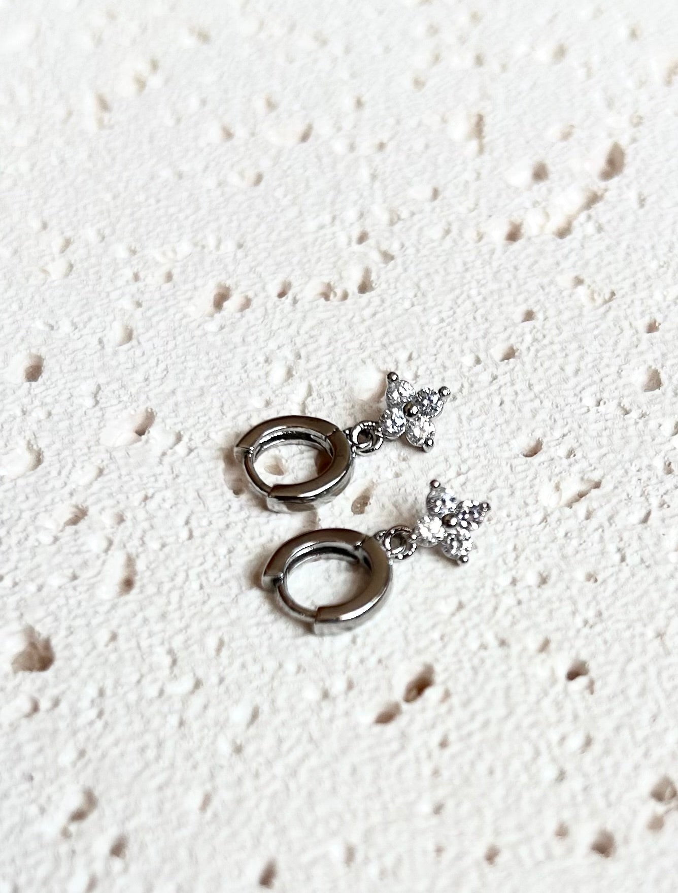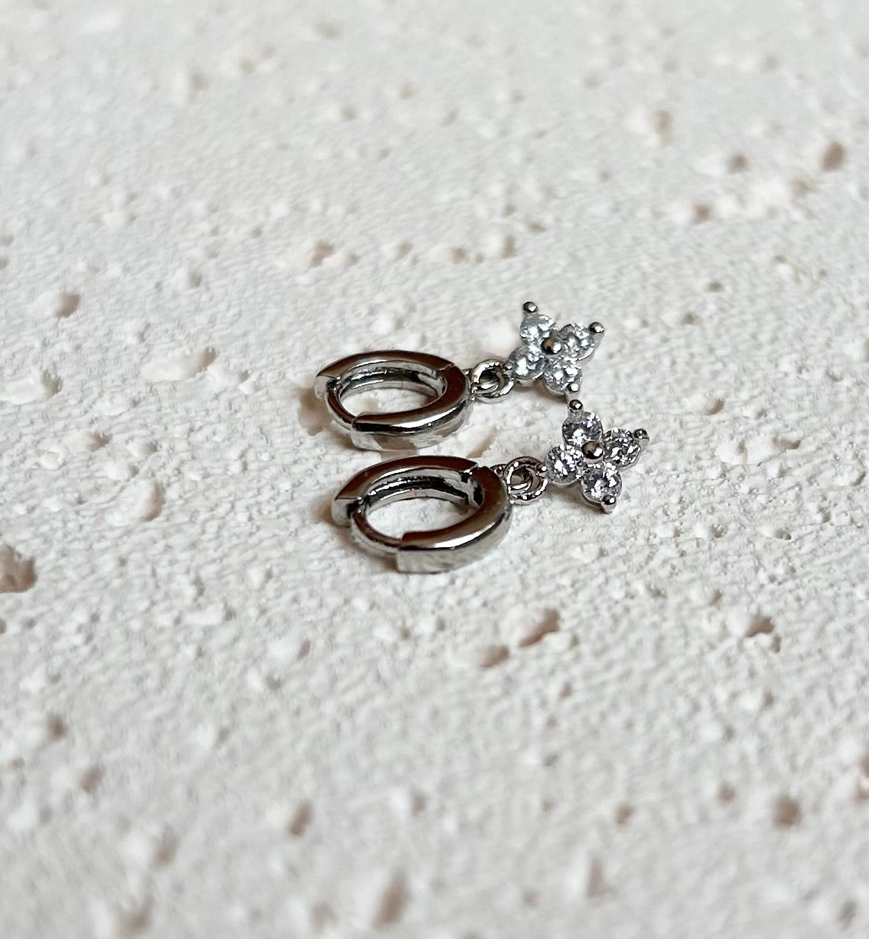 Dare to dazzle with the Katherine cubic zirconia clover earrings! Silver plated for a sleek finish, these stunning huggies catch the light and turn heads!